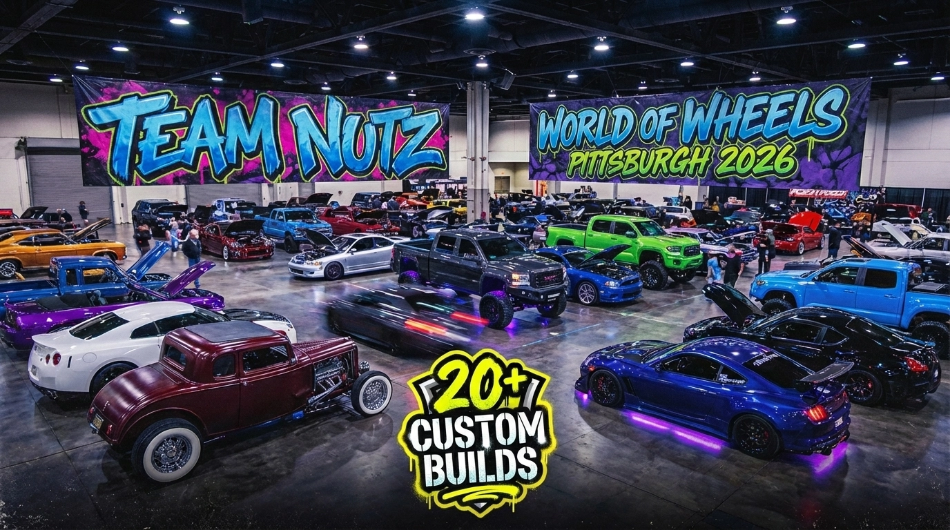 From January 23-25, 2026, we’re rolling up to the David Lawrence Convention Center with 20+ CUSTOM BUILDS that’ll blow your mind! This isn’t just any car show appearance – we’re bringing our ABSOLUTE BEST WORK to showcase exactly why Team Nutz is Pittsburgh’s #1 vehicle customization shop!